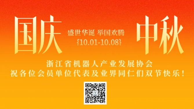 浙江省机器人产业发展协会国庆/中秋放假通知浙江省机器人产业发展协会祝各位会员单位代表及业界同仁们双节快乐!2025-09-30 -