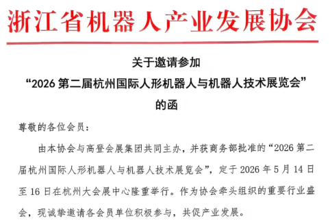 关于邀请参加 “2026第二届杭州国际人形机器人与机器人技术展览会”的函由本协会与高登会展集团共同主办,并获商务部批准的“2026第二届杭州国际人形机器人与机器人技术展览会”2025-10-23 -